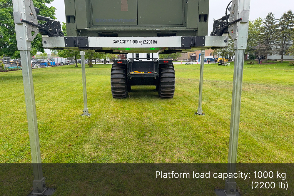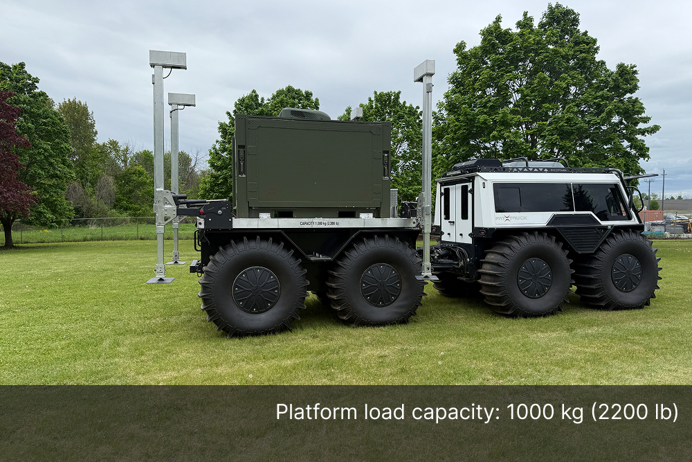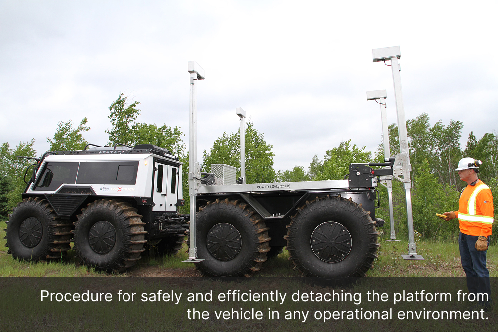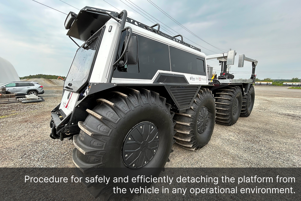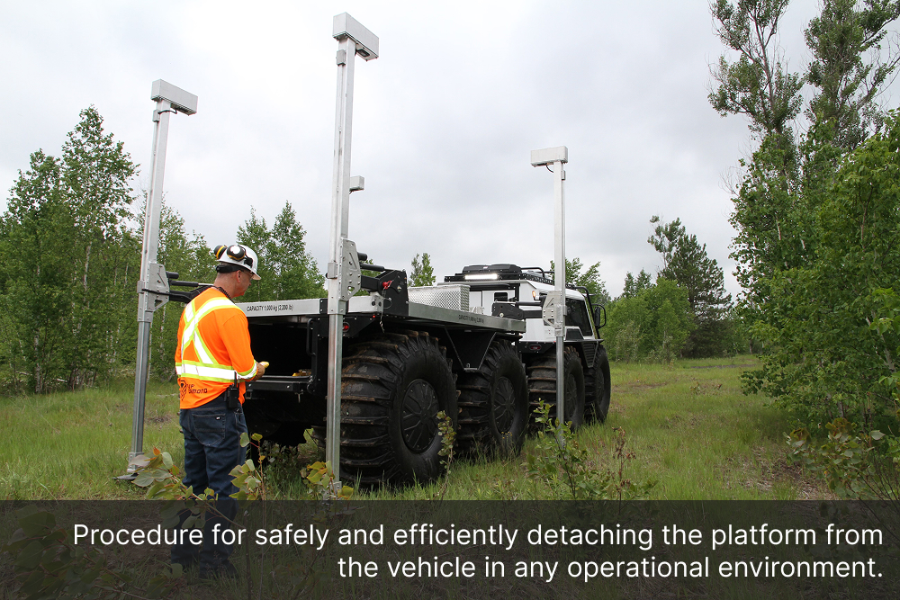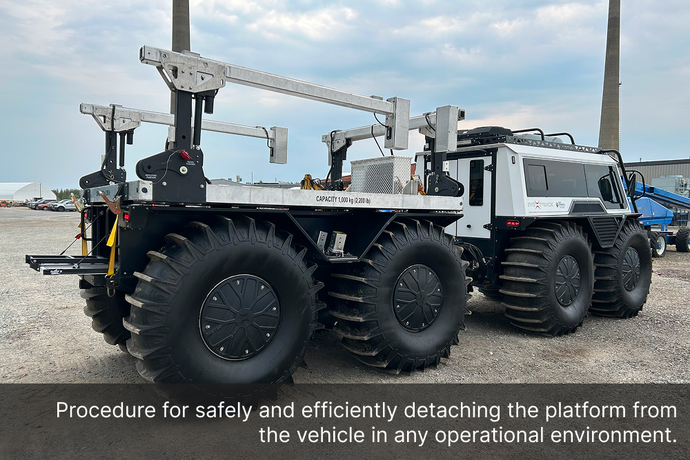 The Demountable Leg Platform is engineered with a quick and secure lift-and-lower system, allowing operators to install or remove the unit with minimal effort, saving valuable time in the field. Its adjustable ground-support bases ensure safe loading and unloading operations, even on uneven terrain, while minimizing downtime, maximizing productivity, and freeing up the Fat Truck 8X8H to be used in additional operations.